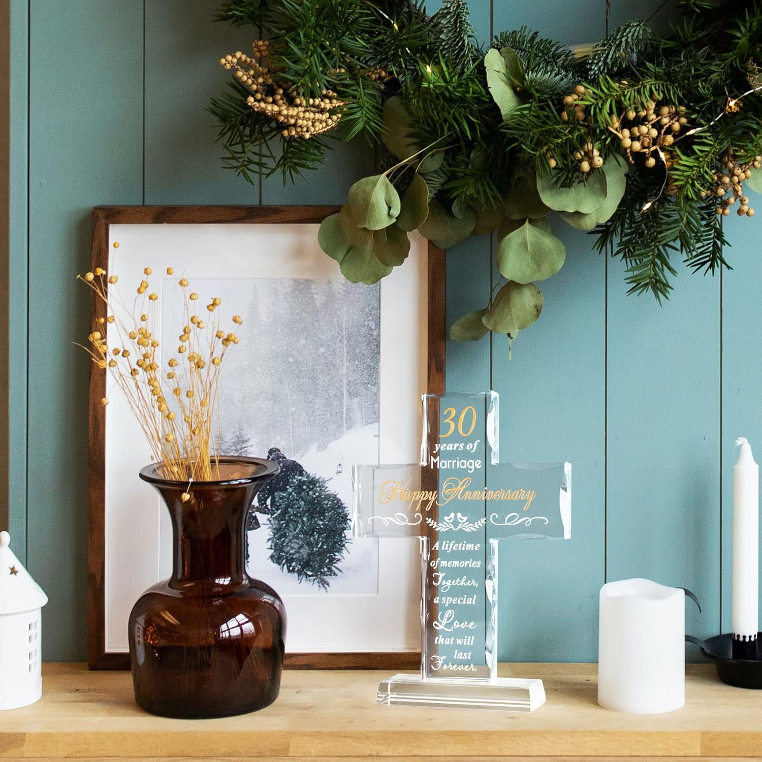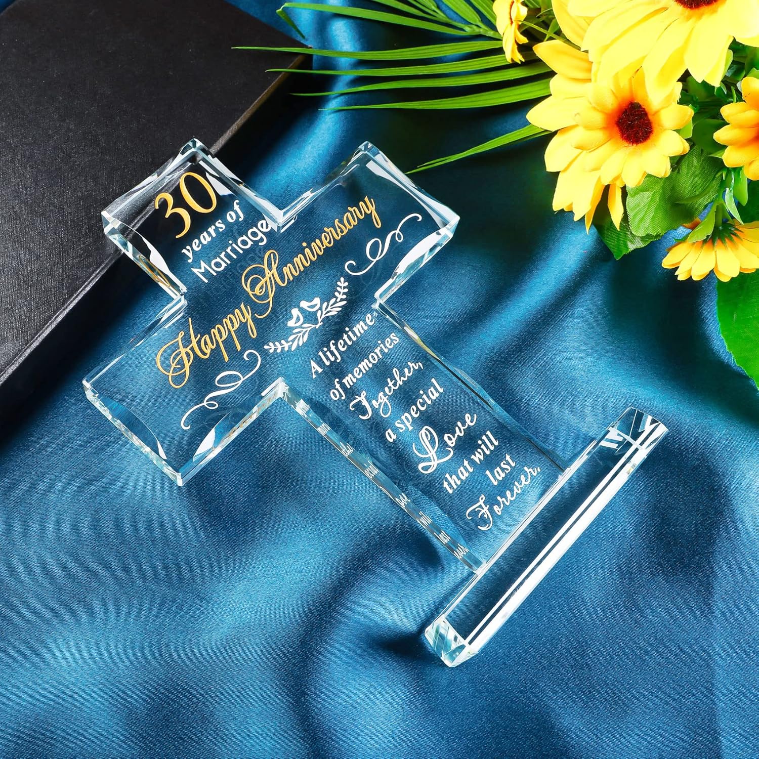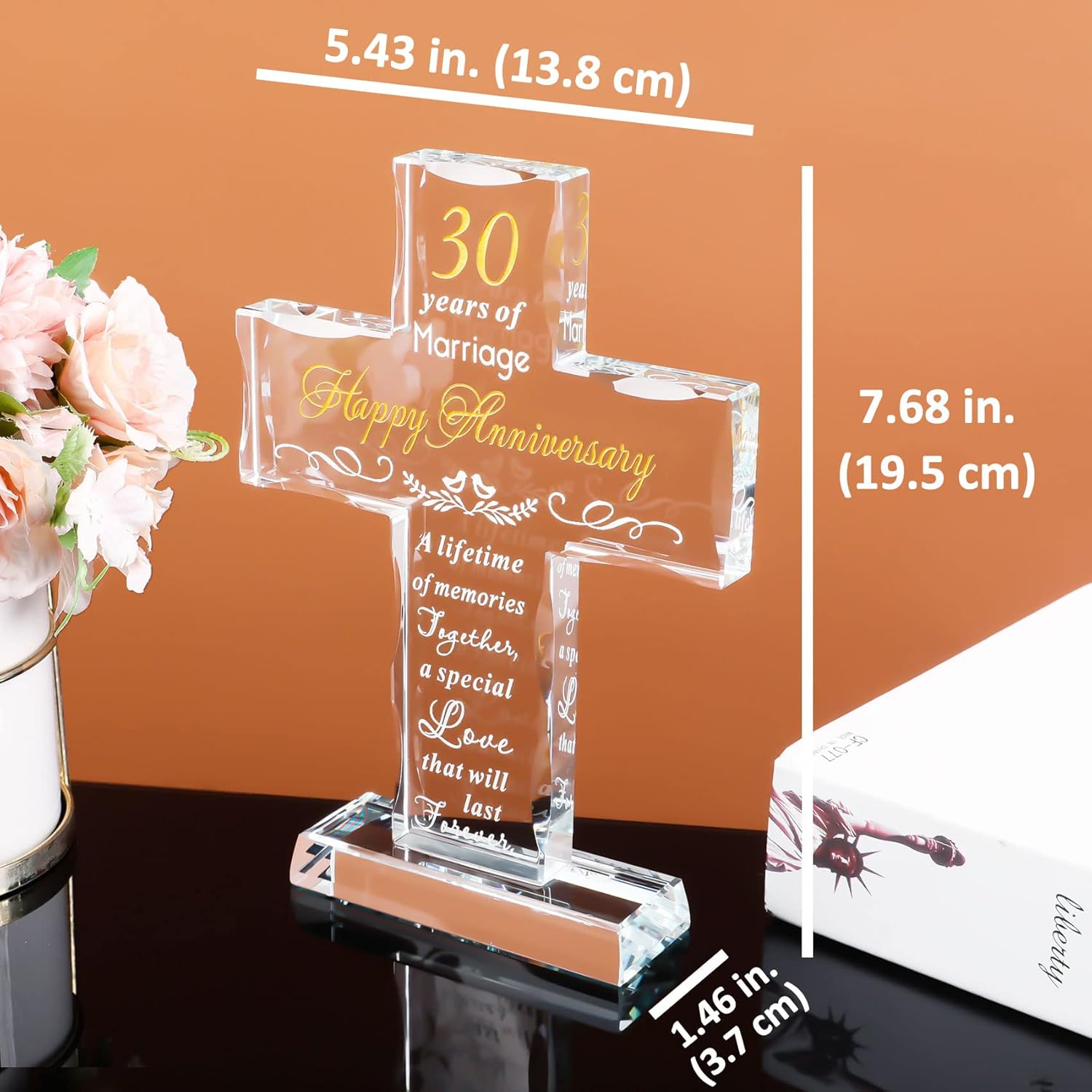 - 30th Anniversary Decoration: The cross comes with its own base and can be placed independently without additional stand, the size is suitable to decorate anywhere in the home, such as living room, bookshelf, desk, bedside table. Size: 7.9*5.5