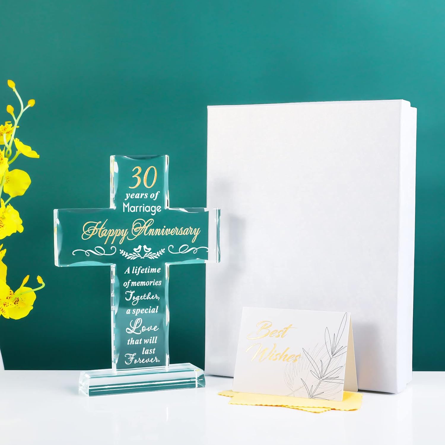 If you are looking for a special and surprising 30th wedding anniversary gift for your wife or husband, this handcrafted cross made of glass will be a good choice, a uniquely designed love language “A lifetime of memories together, a special love that will last forever”, to express your love for your wife or husband, and can be given to each other on various occasions worth celebrating, such as Valentine’s Day, wedding anniversary, Christmas, sweetest day, etc.Product Specifications:Material: GlassFeature: Laser engravingSize: 7.9 x 5.5 inNet Weight: About 1.75 lbPackage Include:1 x Glass Cross keepsake1 x Gift box1 x Gift card1 x Wiping cloth