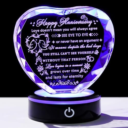 - Perfect Anniversary Gifts for Women Men: A wedding anniversary is an important moment in a marriage and is worth celebrating. This is a great anniversary gift for couples, wives, husbands, grandparents, parents, and friends. The inside of the crystal heart is laser engraved with loving quotes. This gift allows them to have fond memories of their marriage, and at the same time can document their wonderful life ahead