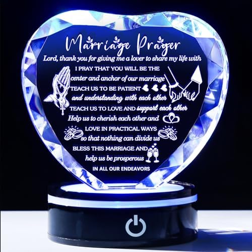 YWHL Wedding Gifts for Couples Crystal Heart Anniversary Marriage Prayer Plaque with Colorful LED Base Wedding Gift with Inspiring Quotes, Unique Newlywed Gifts Mr and Mrs Gifts Bridal Shower Gifts