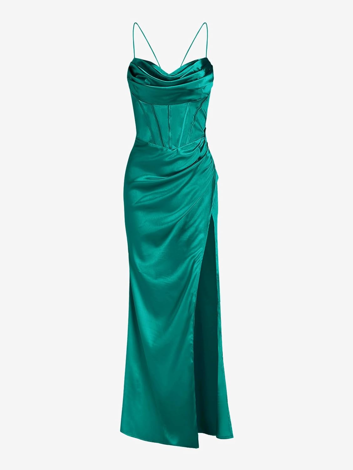 - Design: The exquisite cowl neck and sweetheart neckline corset elements of women’s formal mother of bride dresses is the core design, which cleverly showing off the charm of women’s collarbones and waistlines.The high slit design of spaghetti strap dress not only modifies the body line, but also adds a bit of lightness and agility.