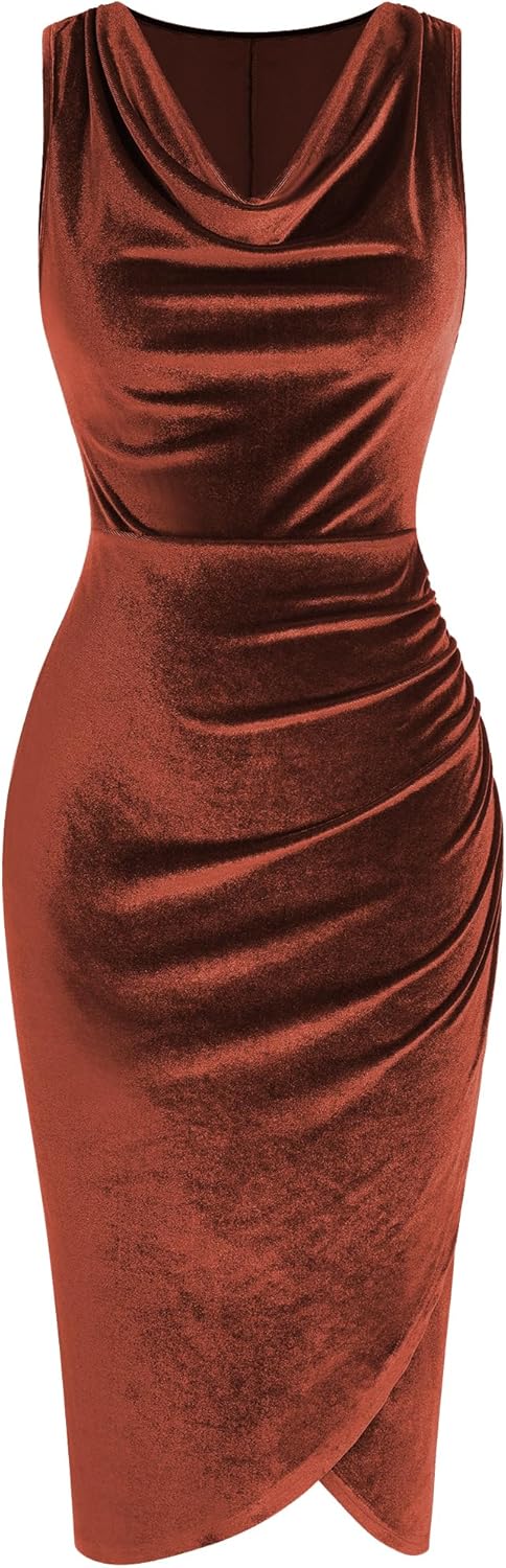 - Cocktail Dresses for Women DESIGNS: Velvet Dress For Women/ Wedding Guest Dress/Cocktail Midi Dresses/ Semi Formal Dress/Ruched Bodycon Dress/ Bodycon Dress that Hide Belly Fat/ Side Slit Sheath Dress/ Tight Fitted Dress for Women/Party Dress For Women/Cowl neckline Dress