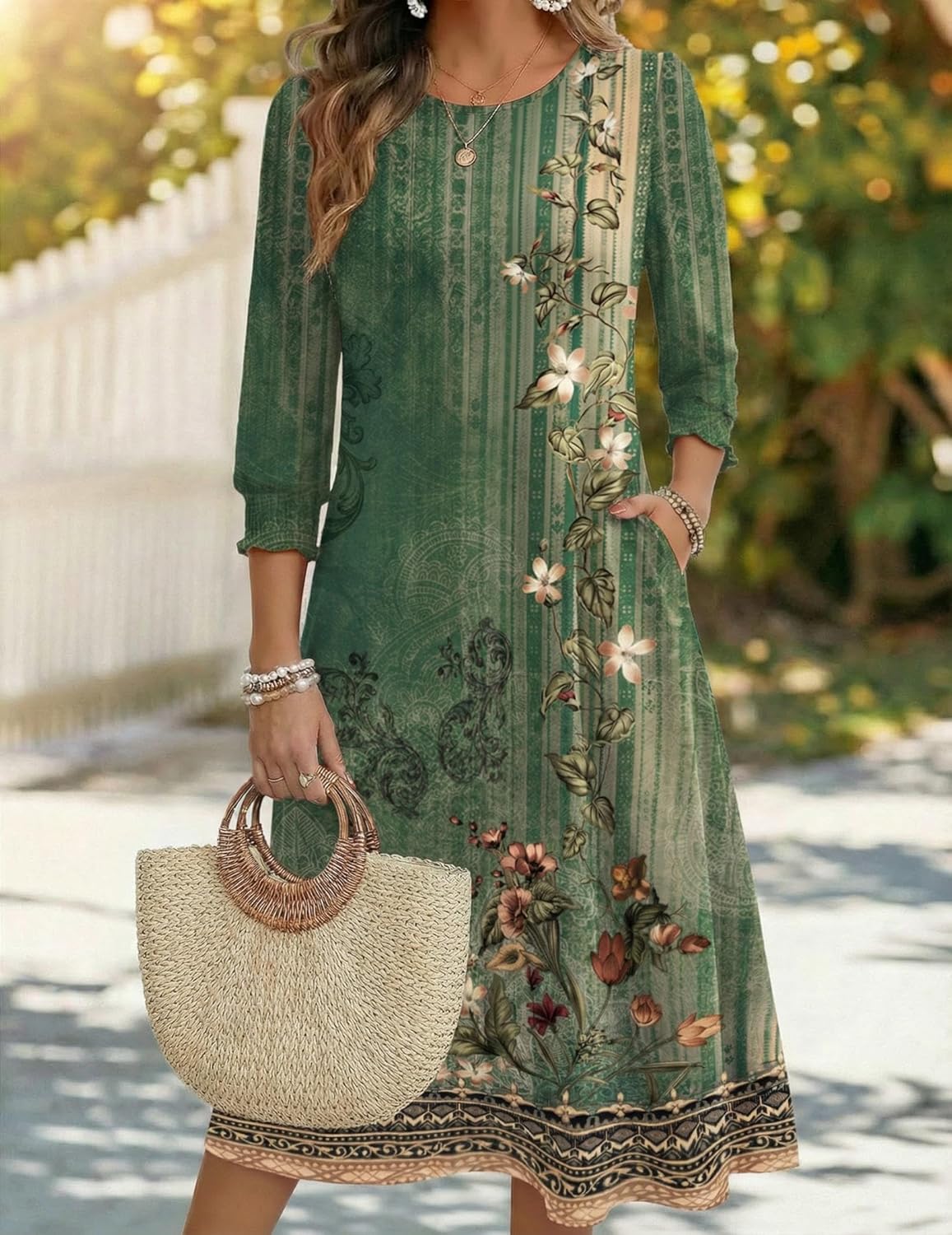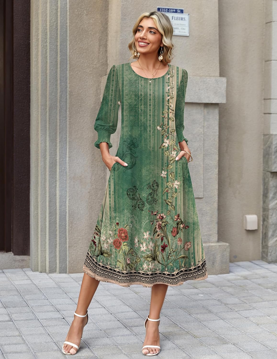 Zeagoo Summer Dresses for Women 2026 3/4 Sleeve Dress for Women Floral Midi Dresses for Casual Womens Dresses with Pockets