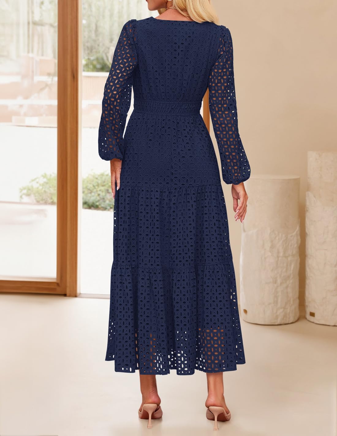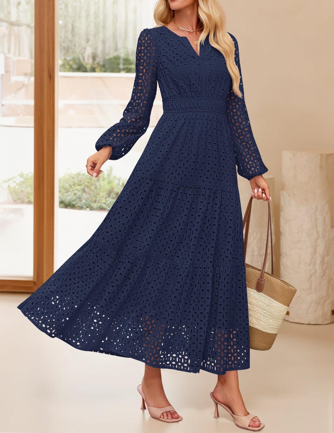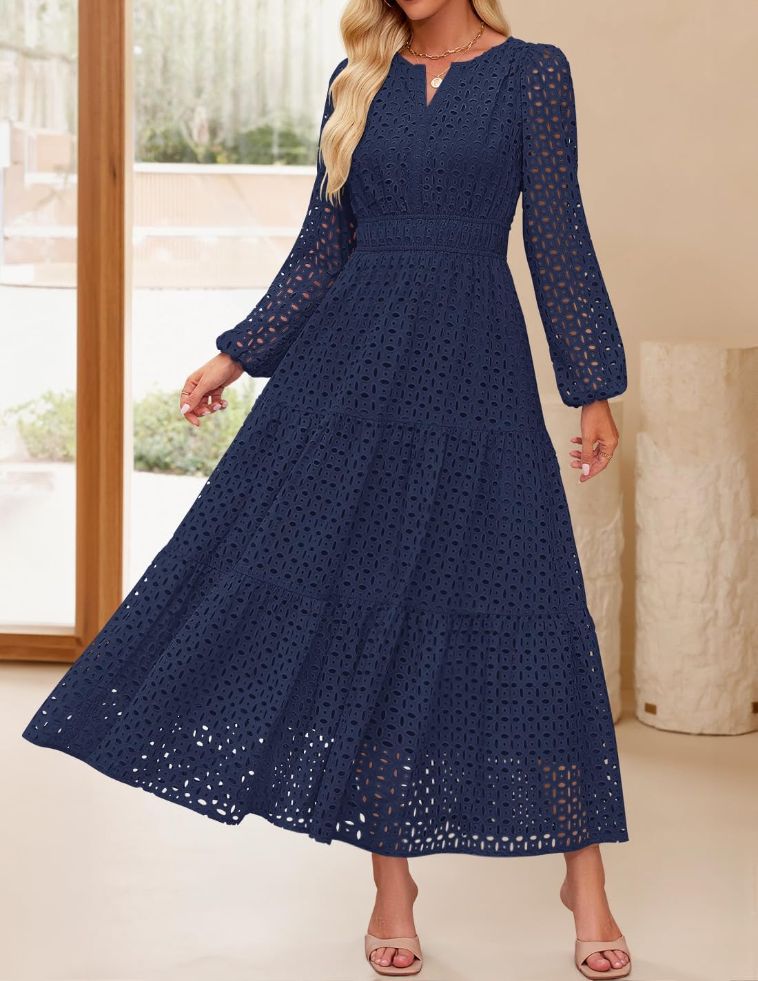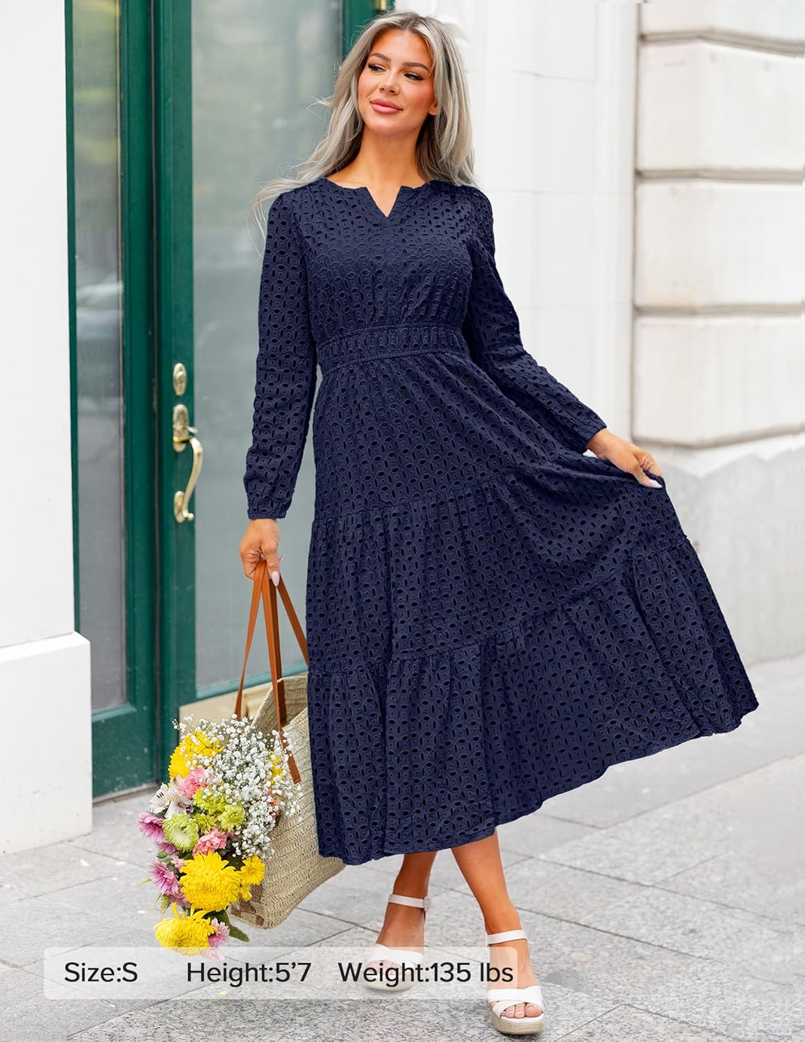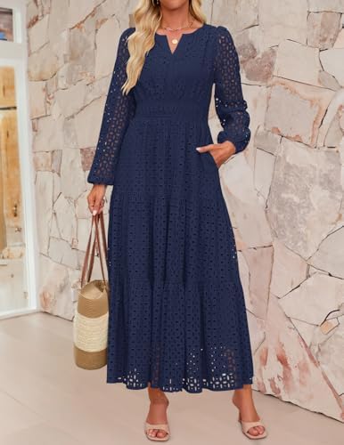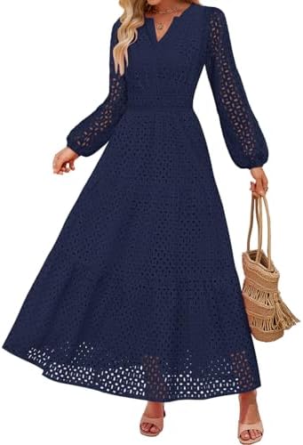 - Features: Maxi dresses for women, v neck dress, long sleeve dress, eyelet dress, fall dress, a line dress, long flowy swing dress, empire waist dress, solid color dress, black dresses for women, white dress, pink dress, sky blue dress, green dress, watermelon red dress, brown dress