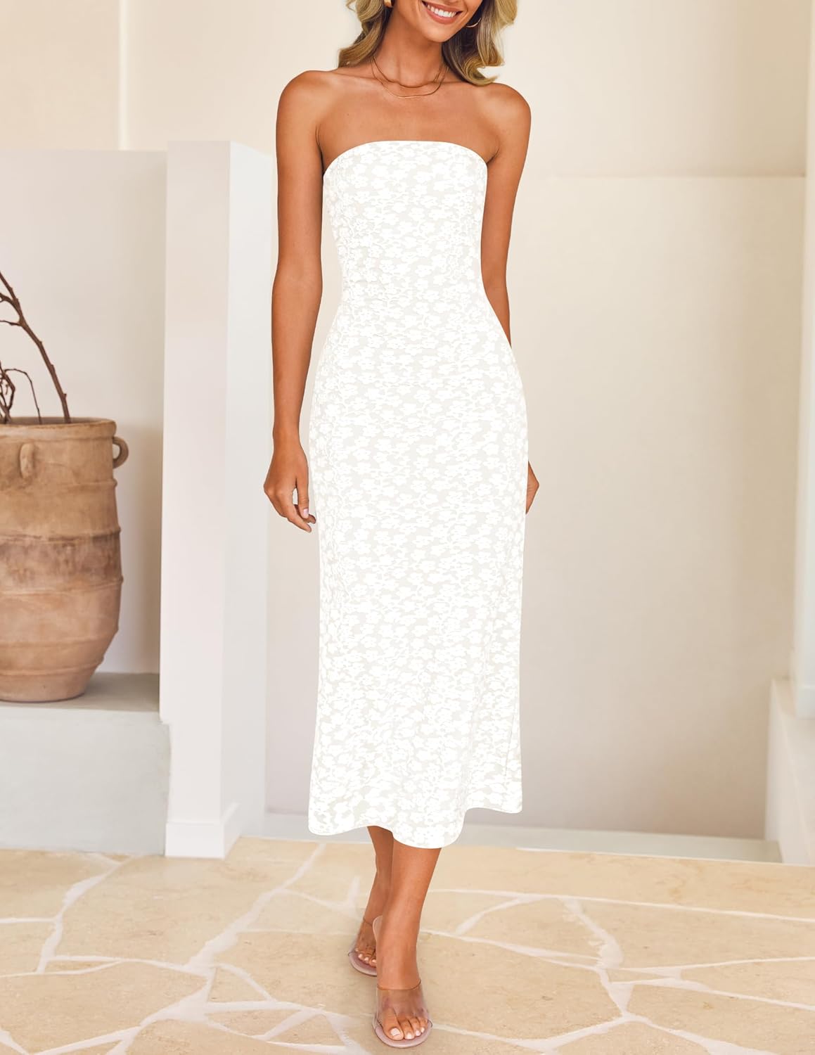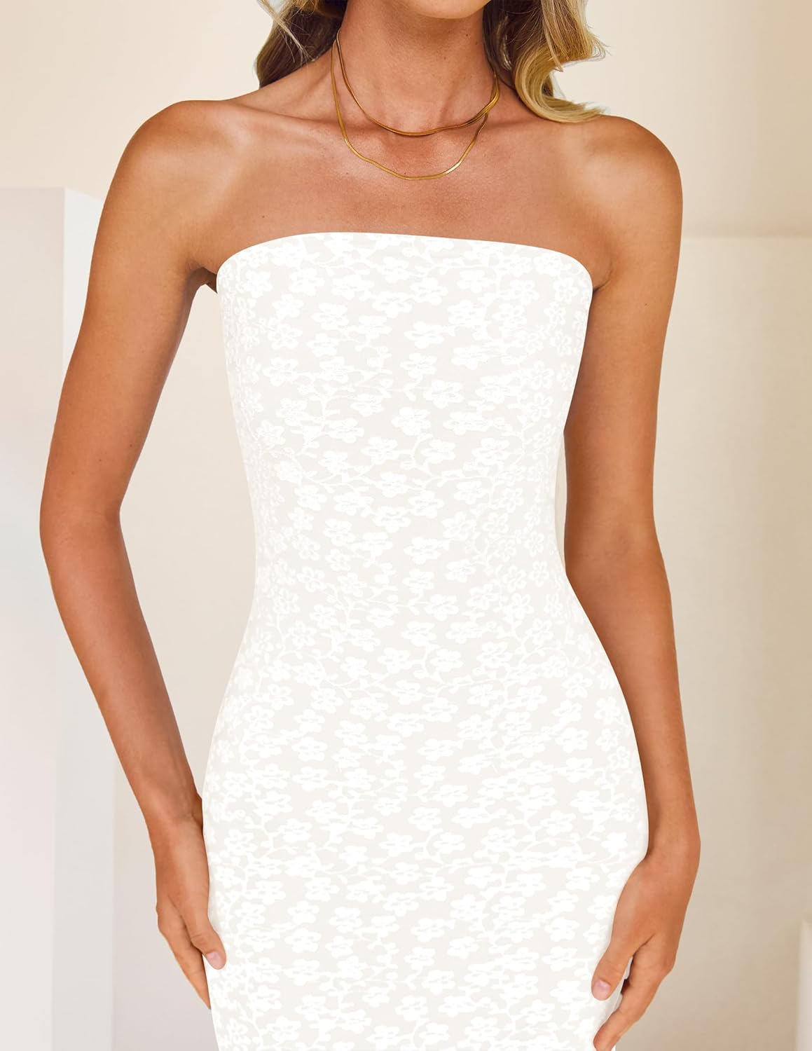 - This sexy midi dress comes with strapless, off shoulder, boho floral, with elastic band at bust, backless, slim fit hugs your figure well, midi length, simple style, all these features can help you exude your charming effortlessly