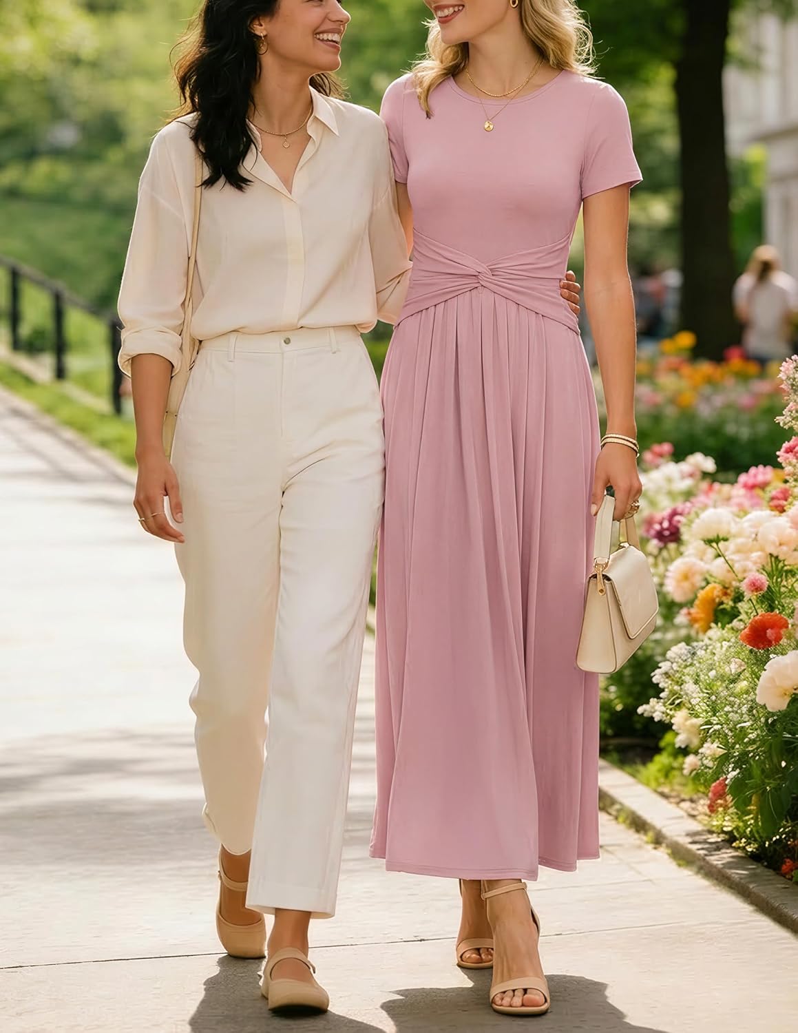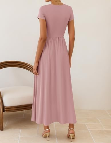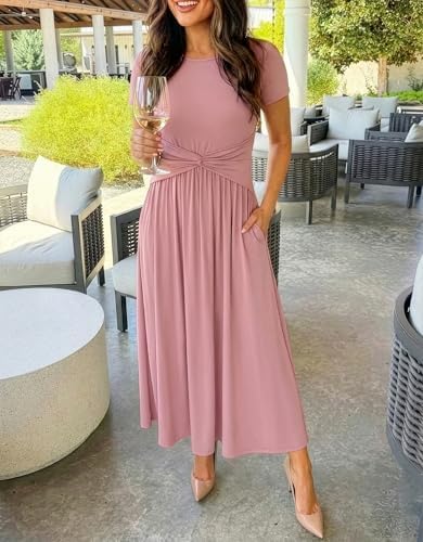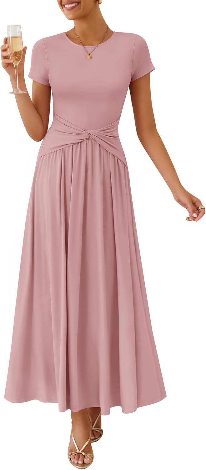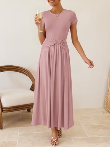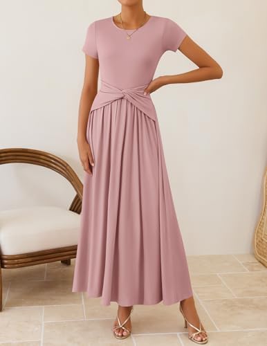 ZESICA Womens 2026 Summer Short Sleeve Maxi Dresses Twist Front Wedding Guest Cocktail Flowy A Line Long Dress