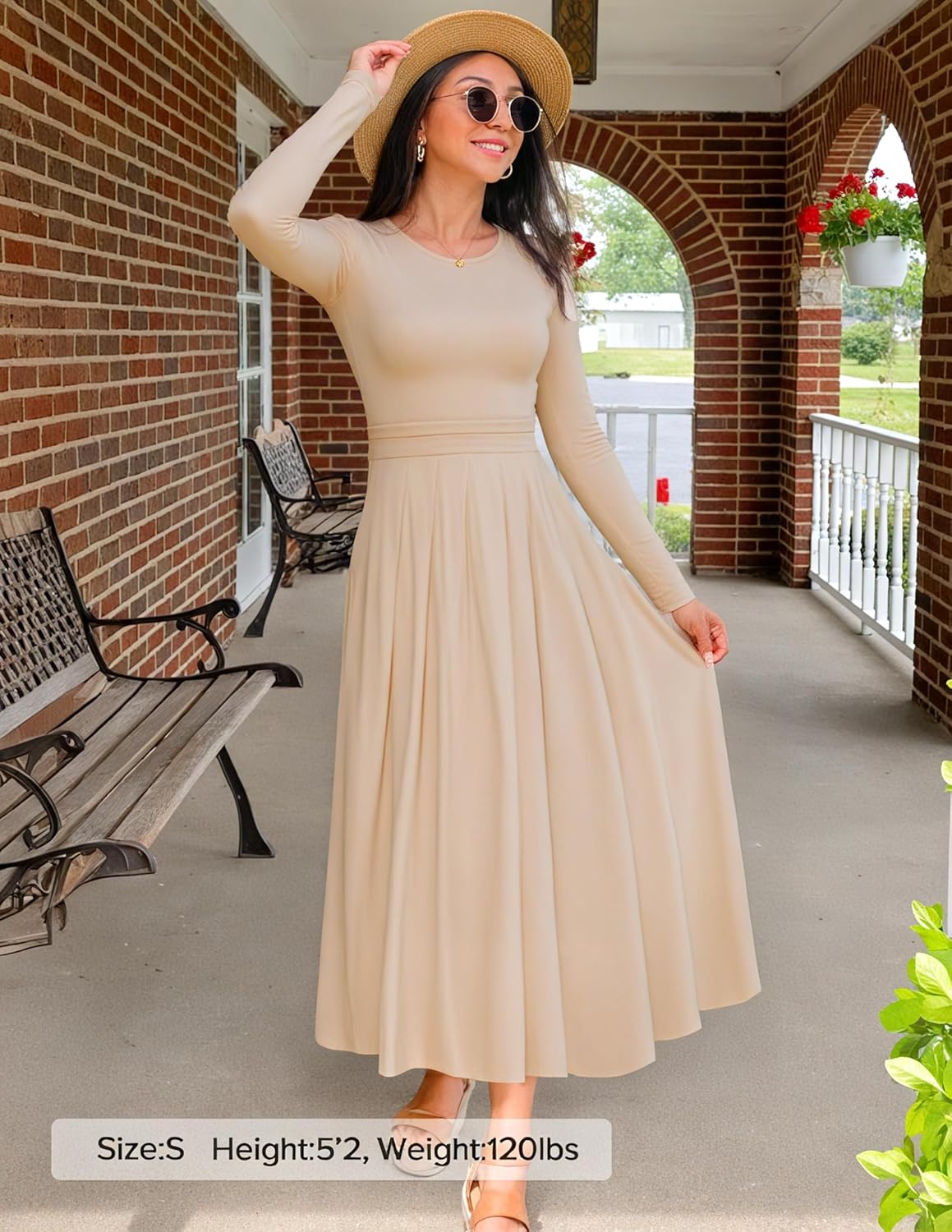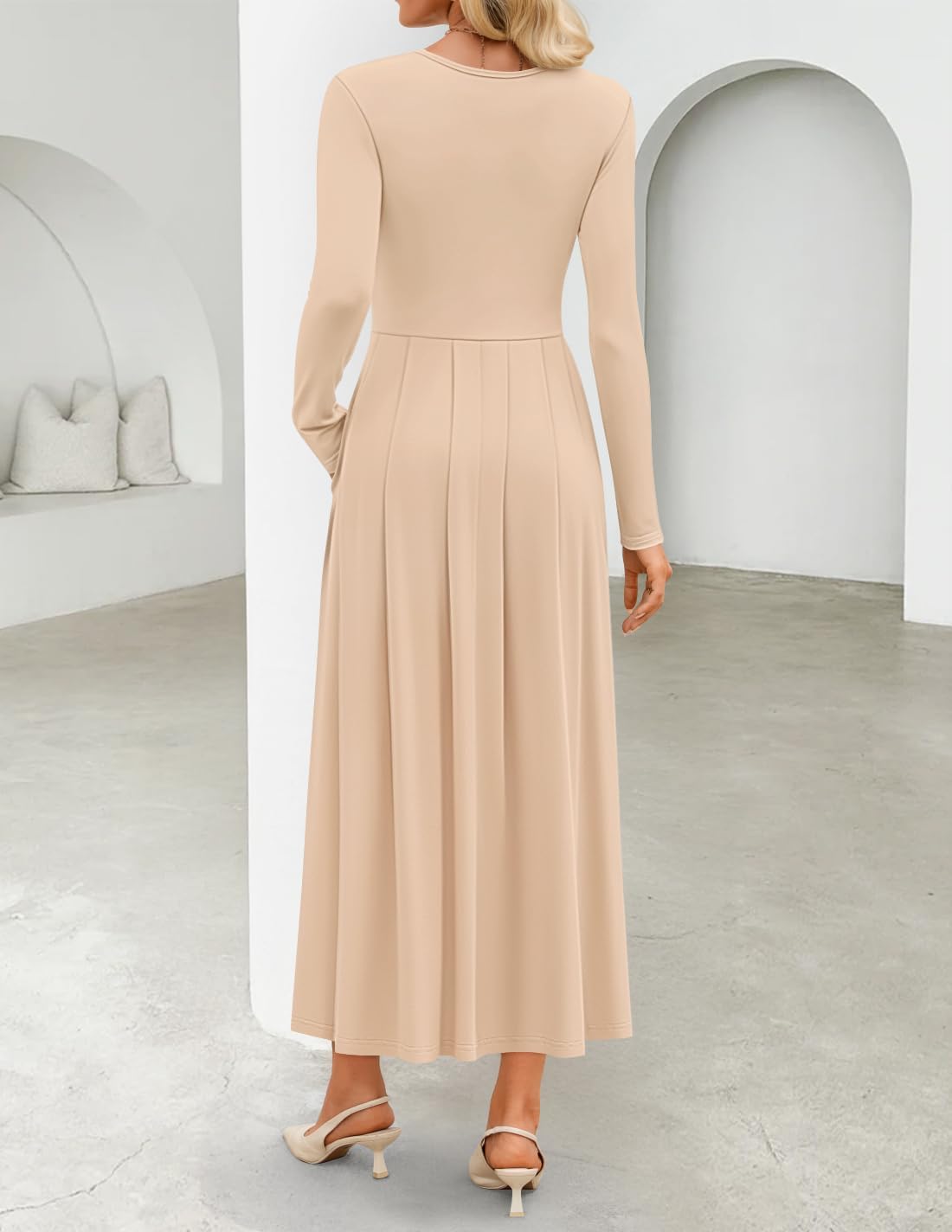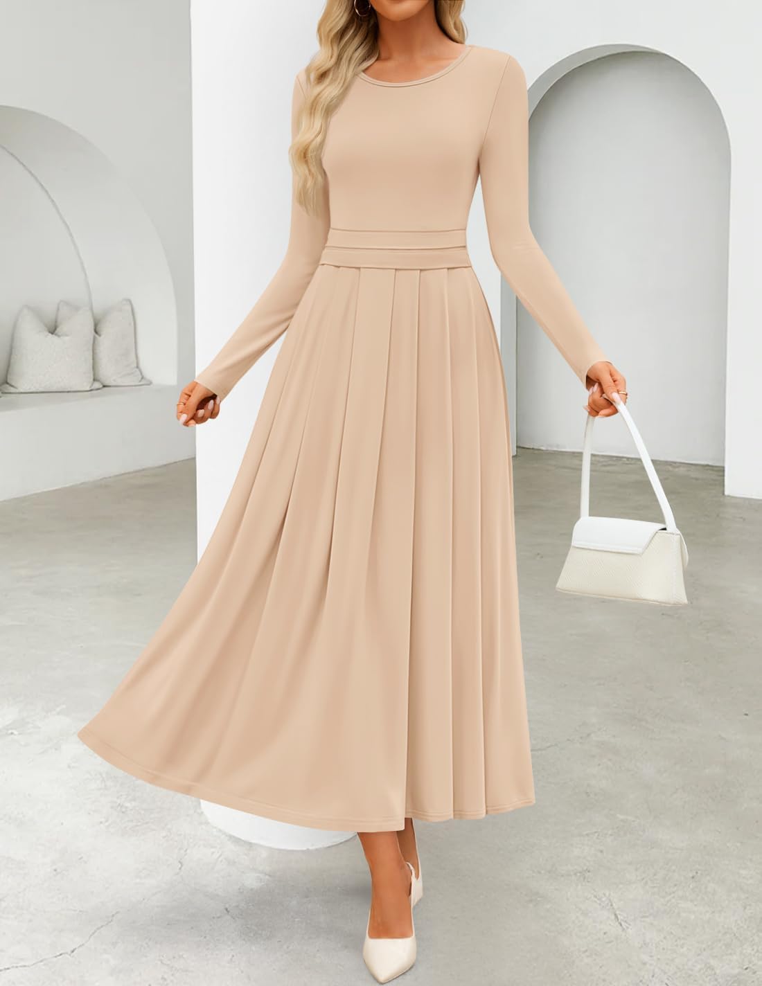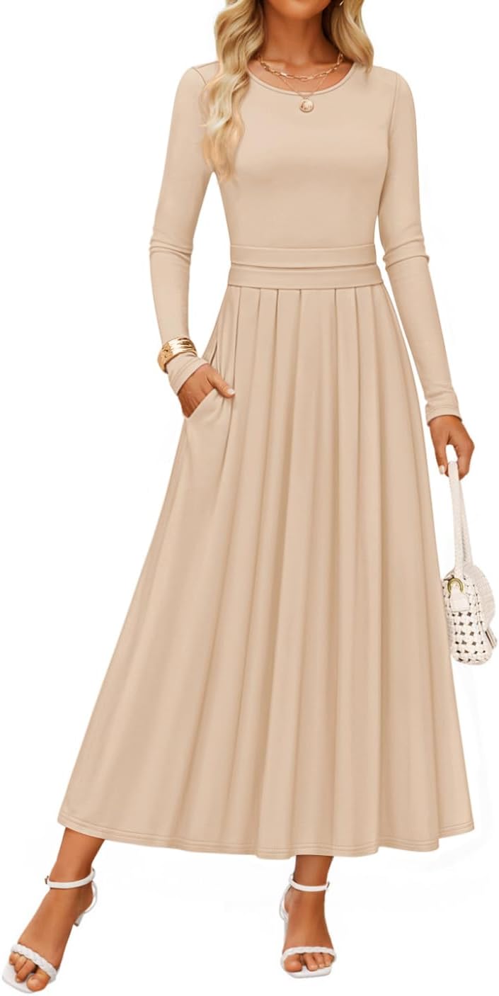 • Features: Classic Crew Neck Dress; Basic Long Sleeve Maxi Dress; Pleated Maxi Long Dress; Swing A Line Dresses; Casual Elegant Long Dress; Soft Knit Dress; Fall Fashion Outfits For Women. Slim Fit Style. If you prefer a loose fit, please size up