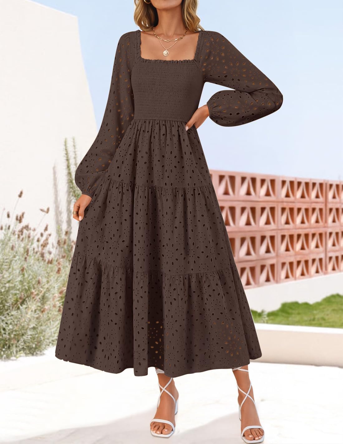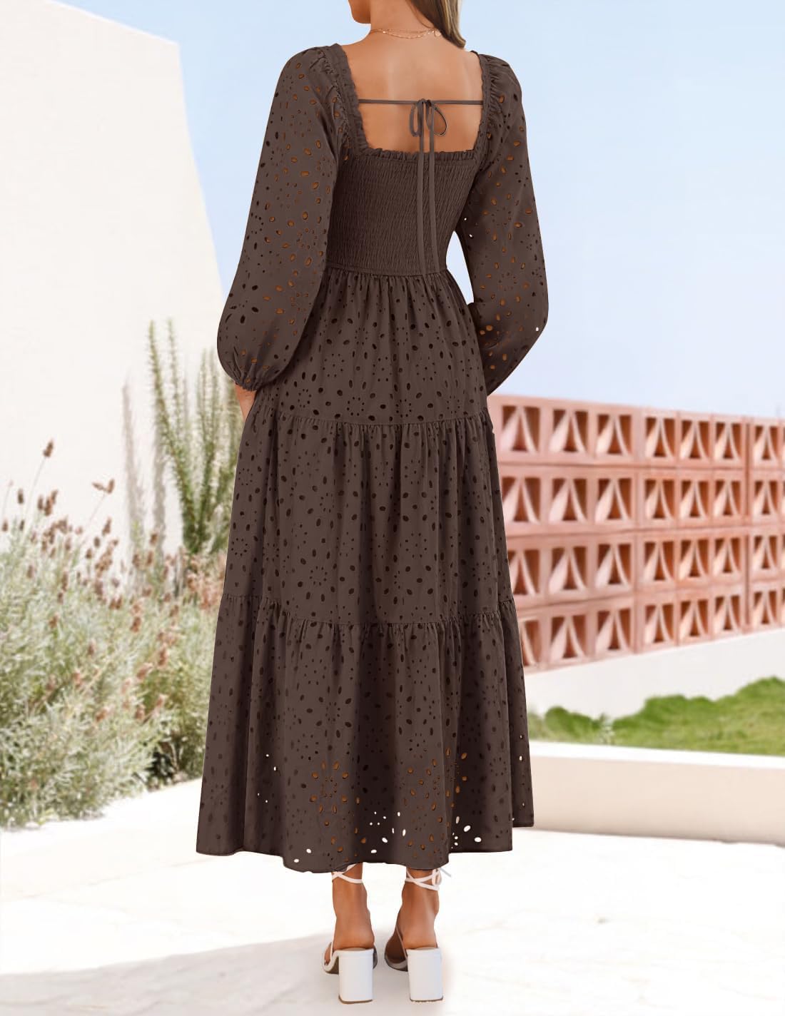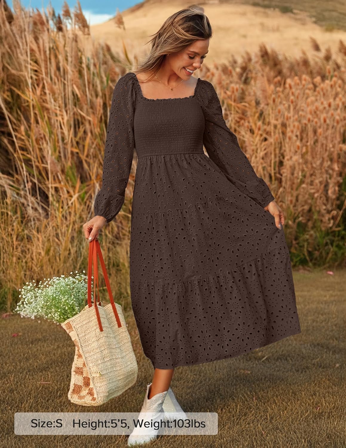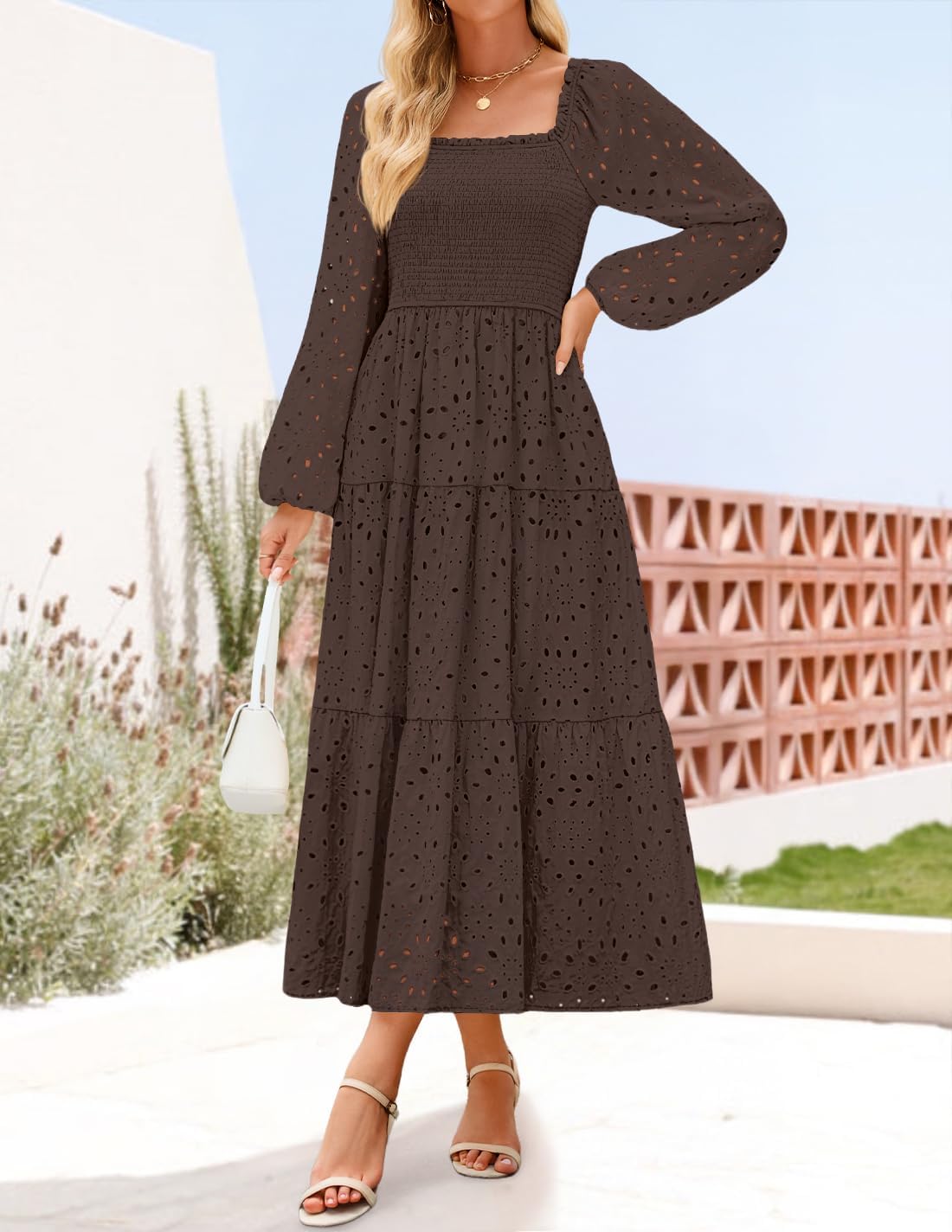 ZESICA Casual Long Sleeve Smocked Maxi Dress For Women