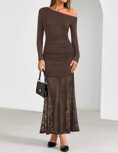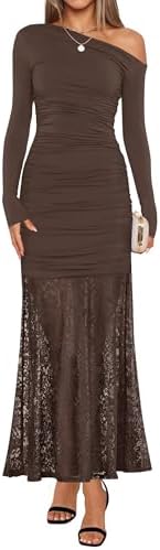 - Features: Off shoulder dresses for women, one shoulder dress, fall dress, elegant maxi dress, long sleeve dress, trendy bodycon dress, slim fitted, sexy lace dress, ruched dress, dressy patchwork dress, solid color, cocktail dresses, wedding guest dress, black dress, white dress, red dress