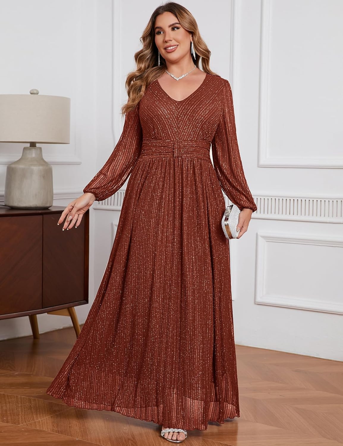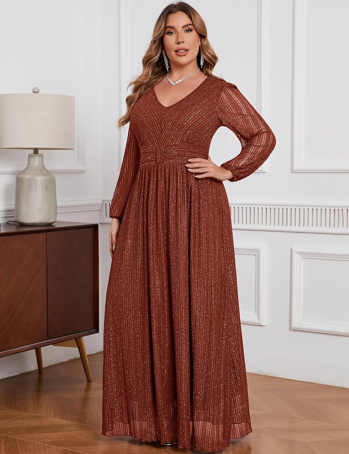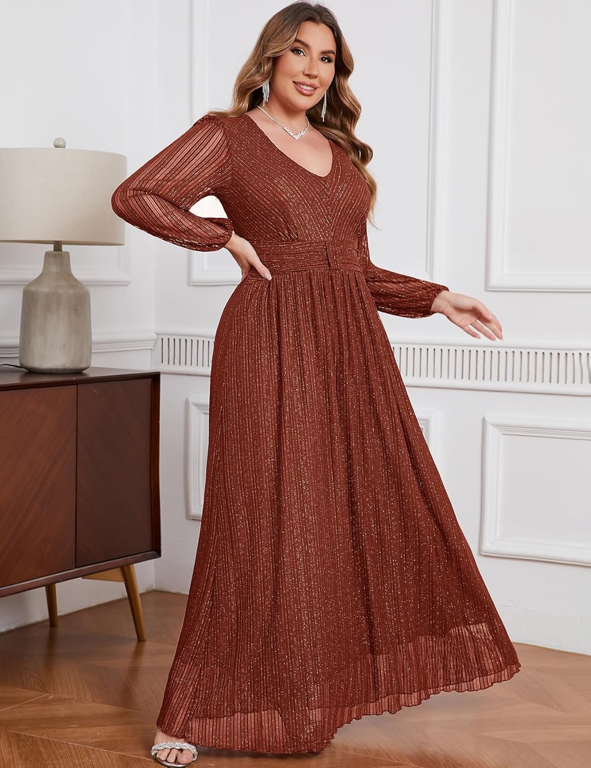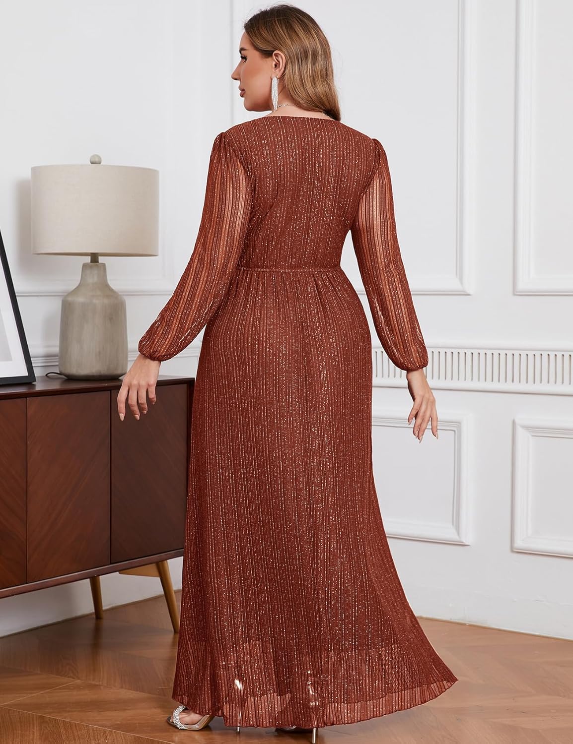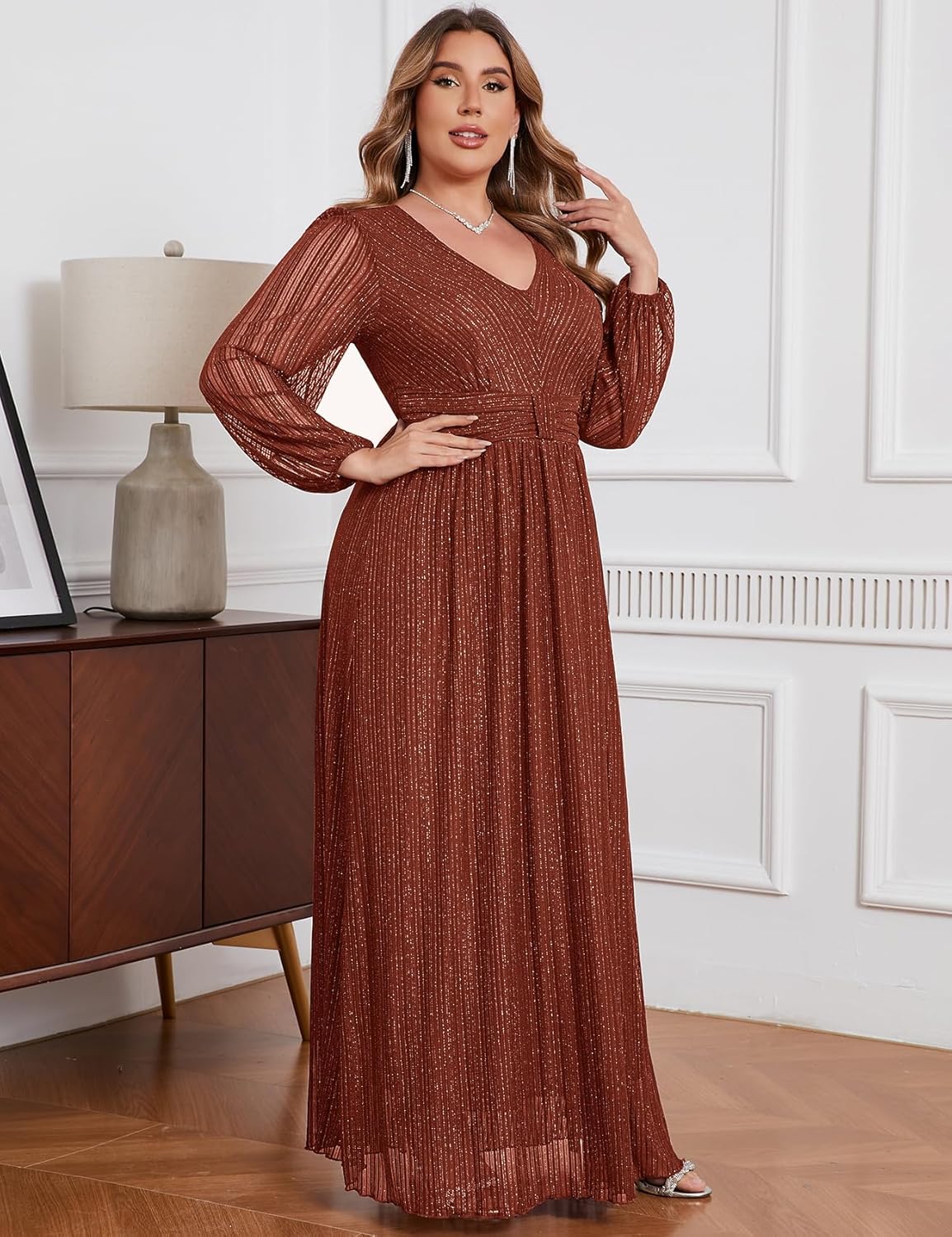 ZOMVA Plus Size Maxi Formal Dress Sparkly V-Neck Evening Gown 11